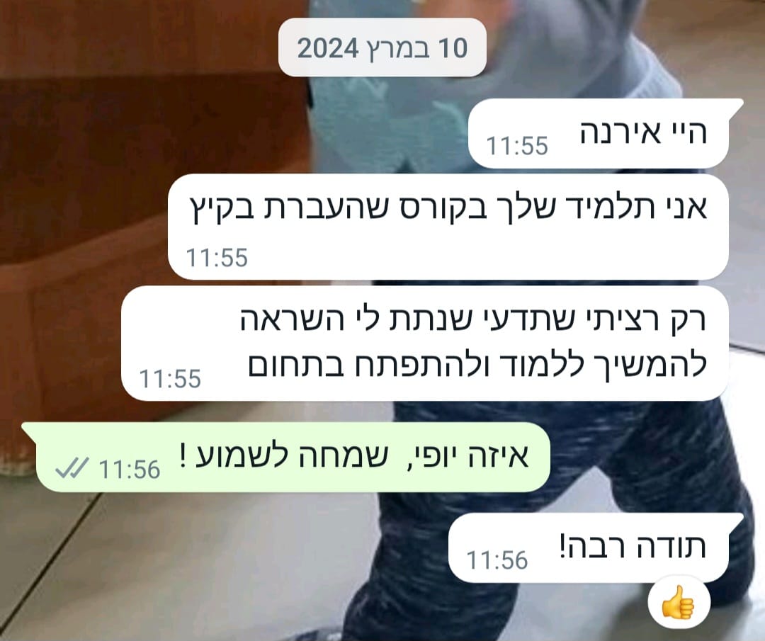 תודה רבה אירנה על הקורס,